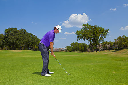 This will angle your foot “inwards” slightly, and will ensure that your weight does not move to the outside of your foot during the backswing.